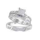 Description 10kt White Gold His & Hers Round Diamond Cluster Matching Bridal Wedding Ring Band Set 1/3 Cttw Gemstone Details 1/3 Carats total weight Specifications 10kt White Gold Combined diamond weight of 1/3 carats total weight represents a range of 0.30 - 0.36 cts. t.w.