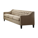 This sofa can bring a sense of class in any living space. This grand looking sofa in elegant beige fabric is very soothing and will complement any interior beautifully. This sofa has button tufted backrest with tight back and loose seat cushion.