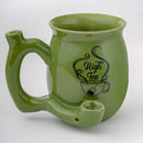 Start your day with a steaming cup of tea and a smoke. Our trendy single-wall mug is crafted from ceramic and features a standard tea cup that can hold approx 11 oz. Attached to the front of the mug is a pipe where you can pack your tobacco and light it. The smoke filters up the hollow handle to the mouthpiece on the top. The mug comes in a shiny green color with a green inside. It has a striking black imprint on the front. Sit back, relax and enjoy your morning tea and smoke.