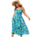 Hot Sale Bright Color Summer Leaf Printed Women Ankle-length Plus Size Sundress