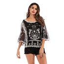 Hot Sale Women Loose Round Collar Three Quarter Sleeve Embroidery Chiffon Blouses