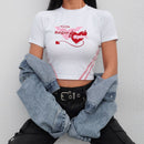 Hot Sale Women Round Collar Short-sleeve Graphic Devil Heart Print Cropped T-shirt