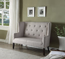 This settee will surely bring high praise from guests to your home. Expertly crafted with selected fabric in solid beige finish. The settee features elegant wingback style backrest, button tufted, and tapered wooden legs.