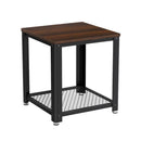 Iron Framed Side Table with Wooden Top and Wire Mesh Open Shelf, Brown and Black