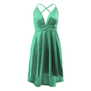 Irregular High-low Hemline Women V Neck Sleeveless Backless Satin Dress