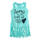 Kids New Arrival Little Girls Letters Print Blue Sleeveless Tassel Long Loose Cotton Dress