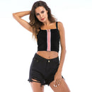 Lady New Fashion Block Color Zipper Stripes Style Backless Slimming Knitted Crop Top Camisole