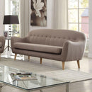 This is a distinct sofa set that intersects the mid-century and today. This collection features clean lines, gray linen fabric, tempered wooden leg and expertly button-tufted back cushions. Bring home this collection, so you can enjoy the comfortable seating and stylish look.