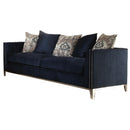This sofa is an ideal choice for any living room. It features decorative nail-head trim and duck feather filing. Pillows are included for better and comfortable back support. This sofa will become the most relaxing area in your fast pace life. Also, it features five pillows adding to your comfort level.