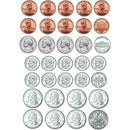 Die-cut magnetic US currency features a real-look, great for basic money counting, sorting, grouping, and making change. Pieces punch out from an 8.5" x 11" magnetic sheet. Great for use on magnetic whiteboards, and sticks to any magnetic surface. Write-on/Wipe-off with dry erase markers or chalk pens! Each pack of Die-Cut Magnetic US Coins contains 33 pieces that include pennies, nickels, dimes, and quarters.