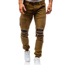 Men Cotton Solid Color Slim Fit Denim Jeans With Holes