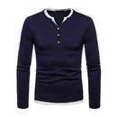 Men Thick Cotton Long Sleeves Patchwork V Neck Casual Warm Tops