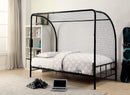 Perfect for the sports lover or little athlete in your home, this Twin Size Soccer Goal Bed combines fun with function. With its frame constructed from sturdy tubed steel in powder-coated black finish, this tall canopy bed is modeled after a regular soccer goal with a curved back. The sides and back of this twin size bed come equipped with a real nylon net and will help you score with your kids during play time. Dimensions: Width: 78.00in x Depth: 41.25in x Height: 69.25in