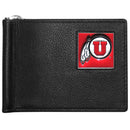 This cool new style wallet features an inner, metal bill clip that lips up for easy access. The super slim wallet holds tons of stuff with ample pockets, credit card slots & windowed ID slot. The wallet is made of genuine fine grain leather and it finished with a metal Utah Utes emblem. The wallet is shipped in gift box packaging. Officially licensed College product. Genuine fine grain leather wallet. Metal, flip out bill clip. Slim style wallet with lots of storage. Metal Utah Utes emblem with enameled team colors