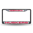 Black License Plate Frame Nebraska "Huskers" Laser Chrome Frame