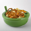 The munchies bowl is made of ceramic with a shiny green finish. It is the perfect size to hold chips, pretzels, or any other type of snack you might want. On the side of the bowl is a holder where you can pack your tobacco and light it. The smoke filters through the bowl to the mouthpiece.