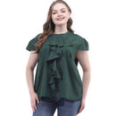 Plain Color Women Elegant Ruffled Round Neck Plus Size Blouse