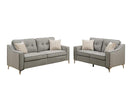 This 2 piece sofa set is draped in mid century style, that can flaunt in any interior beautifully. This sofa is wrapped in gray linen-like fabric trimmed in black accent piping. Relax with ultra plush seating with accent button tufting on the back cushions. This sofa set comprises one loveseat and one sofa.