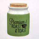 The jar is decorated with a bold green Premium Roast & Toast design that perfectly matches our one and only Premium Roast & Toast mugs.