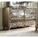 Raised Scrolled Floral Inlaid Wooden Dresser with Mirror Front, Gold & Brown