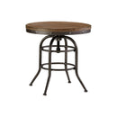 Bring great aesthetics to your space with the inclusion of this mid century style end table. Supported on a dark black metal frame, it features butcher block style top in contrasting brown finish that perfectly complements the look. The rivet trim details accentuate its appeal while the top remains stationary and provides great stability to your books, decorative items, beverages or which ever way you want to use it. Designed with unique elements, it will add a striking focal point to your decor style Adjustable top height (max): 27.38", Adjustable top height (min): 23.13".