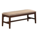Bring Uniqueness To Your Home With This Beautiful Rubber Wood Bench. It has tapered legs and the beige upholstery provide comfortable seating with a footrest base. Dimension: 54" X 17" X 18"H (Primary Color: Brown and Beige)