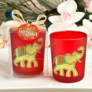 Beautiful shades of the East blend together on these wonderful votive candle holders from our exclusive range at Fashioncraft. The elephant stands on a ruby red background and is adorned with myriads of rhinestones that sparkle and twinkle when the candle is lit.