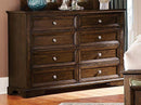 This traditional style 8 drawer wooden dresser is help to achieve a timeless look. It accented with brown finish and understated knob hardware. It has 8 spacious drawer for store your personal items and perfect for any bed room or guest room.