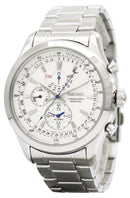Stainless Steel Case Stainless Steel Bracelet Quartz Movement Caliber 7T86 Mineral Glass Silver Patterned Dial Chronograph Function Tachymeter Perpetual Calendar Leap Year Indicator Alarm Function Deployment Clasp 100M Water Resistance Approximate Case Diameter 40mm Approximate Case Thickness 11.5mm