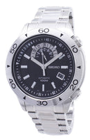 Stainless Steel Case Stainless Steel Bracelet Automatic Movement Caliber 4R37 Hardlex Crystal Black Dial AM-PM 24 Hour Half Sub Dial At 12 O'clock Position Luminous Hands And Markers Countdown Scale Date Display Fixed Stainless Steel Bezel Three Fold Clasp With Push Buttons Released 100M Water Resistance Approximate Case Diameter 45mm Approximate Case Thickness 13mm