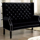 This single loveseat chair comes in a stunning wingback design with smooth flannelette draped over its rolled arms with a neat nail head trim and an attractive deep shade of black.