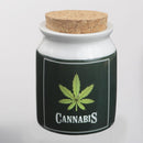 Hot from our latest finds! This large stash jar is made from ceramic and has a cork top. It comes with a dark green label and a green leaf design on the front.