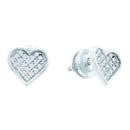 Description Sterling Silver Women's Round Diamond Heart Love Cluster Earrings 1/10 Cttw Gemstone Details 1/10 Carats total weight Specifications Sterling Silver Combined diamond weight of 1/10 carats total weight represents a range of 0.09 - 0.11 cts. t.w.