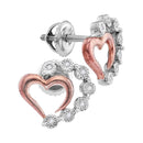 Description Sterling Silver Women's Round Diamond Rose-tone Heart Stud Earrings 1/20 Cttw Gemstone Details 1/20 Carats total weight Specifications Sterling Silver Combined diamond weight of 1/20 carats total weight represents a range of 0.04 - 0.06 cts. t.w.
