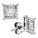 Description Sterling Silver Women's Round Diamond Solitaire Square Stud Earrings 1/10 Cttw Gemstone Details 1/10 Carats total weight Specifications Sterling Silver Combined diamond weight of 1/10 carats total weight represents a range of 0.09 - 0.11 cts. t.w.
