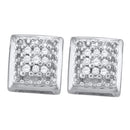 Description Sterling Silver Women's Round Diamond Square Cluster Screwback Earrings 1/10 Cttw Gemstone Details 1/10 Carats total weight Specifications Sterling Silver Combined diamond weight of 1/10 carats total weight represents a range of 0.09 - 0.11 cts. t.w.