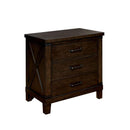 Three Drawer Nightstand with Metal Handle And Crossed Planked Side Panels, Brown