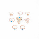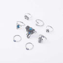 TOMTOSH 2017 8pcs /Pack Boho Retro Elephant Snake Blue gem Rings Lucky Stackable Midi Rings Set of Rings for Women Party