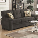 Transitional Micro Velvet Fabric & Wood Sofa With Padded Armrests, Dark Gray