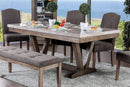 Transitional Style Solid Wood Dining Table with Marble Top, Brown and Gray