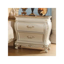 Complete the look of your bedroom with this Nightstand that offers function and a nice visual presence. Everything from the scrolled legs to the solid wood construction makes this Nightstand an exquisite piece of furniture for your bedroom. Topped with a sleek granite surface and finished in Pearl White, this nightstand will be a center piece to any decor. Featuring two drawers, this nightstand provides you just enough space to store your reading books, reading glasses, and other belongings at an arms length away from you in bed. Completed with shell crown and scrolled molding trim, the nightstand will bring the perfect traditional style to your bedroom. Note: Other featured items in image except this Nightstand are sold separately.