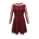 Unique Mesh Patchwork Long-sleeve Polka Dot Pattern Swing Dress