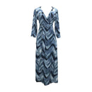 Women Classic Zig Zag Print Lace Up Pattern Long Sleeves Dating Dress