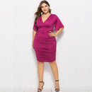 Women Elegant Solid Color Flare Sleeve Pleated Plus Size Tight Dress