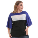 Women Geometric Color Blocking Design Half Sleeves Plus Size Chiffon Top