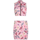 Women Metal Circle Zipper Decorative Butterfly Print Camisole And Split Tight Skirt Set