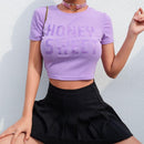 Women Round Collar Short-sleeve Graphic Print Cropped T-shirts