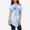 Women Slim Pattern Classic Print Irregular Hemline Round Neck T-shirt