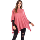 Women Winter Warm Outfit Solid Color Pom Pom Decorated Knitting Cloak