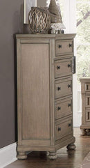 Offering a rustic but transitional touch to your decor, this classic dresser with organic like looks provides an elegant touch for your modern interiors. Framed in solid wood construction this lovely dresser has antique white finish for modern touch. Featuring five drawers and a spacious top this nightstand will give you a perfect display area or vignette for displaying you decors. All drawers comes with a contrasting metal pull for easy functioning.